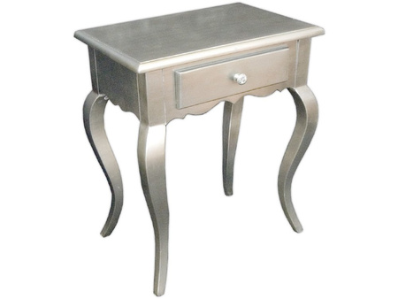 Stylowa szafka w kolorze srebrnym, wykonana z wysokiej jakości drewna, pokryta (szlagmetalem), posiada stylizowane nóżki. Szlagmetal to cieniutkie listki metalu ręcznie nakładane i przecierane kamieniem Agatu co powoduje niepowtarzalną strukturę i kolor. Komódka posiada szufladę na drobne przedmioty. Doskonale komponuje się we wnętrzach stylizowanych jak i nowoczesnych.Potrzebujesz pomocy? Masz pytania?Zadaj pytanie a my odpowiemy niezwłocznie, najciekawsze pytania i odpowiedzi publikując dla innych.