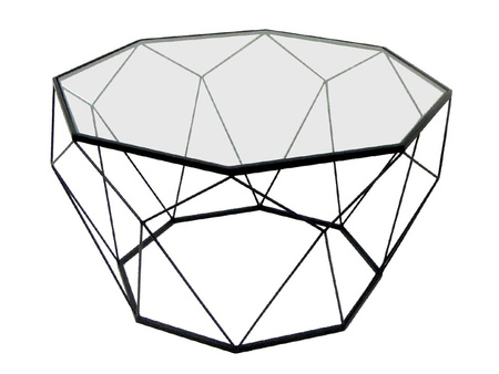 - Stolik kawowy, którego geometryczna podstawa została wykonana ze stalowych, drucianych elementów w kolorze czerni.