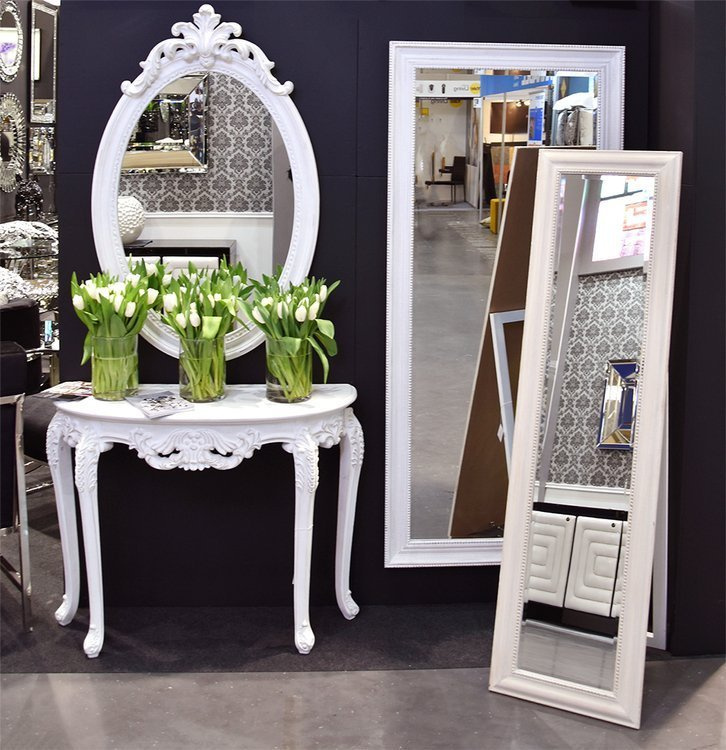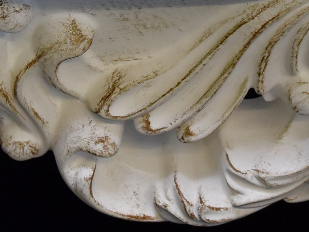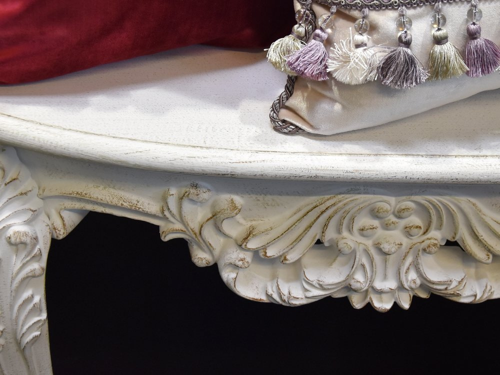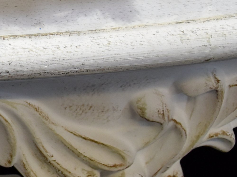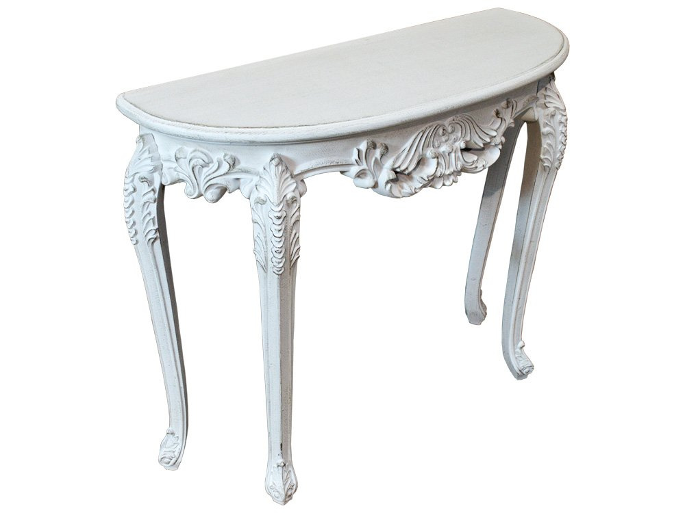 - Przyścienna, półokrągła konsola w stylu prowansalskim. Wykonana z wysokiej jakości drewna, pokryta białym lakierem (delikatnie przecieranym).