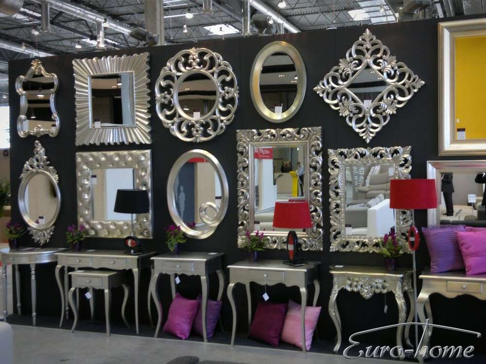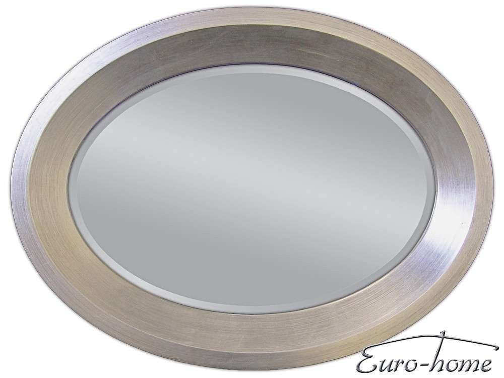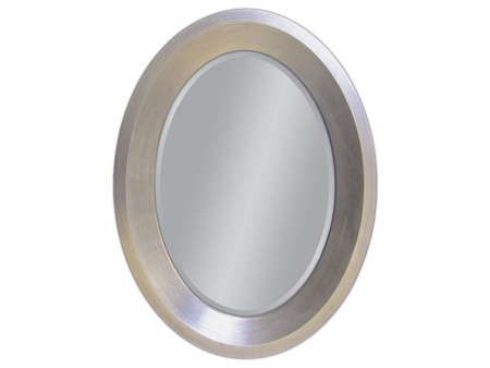 - Owalne, klasyczne lustro w drewnianej ramie pokrytej, za pomocą techniki pozłotniczej, srebrnymi płatkami metalu.