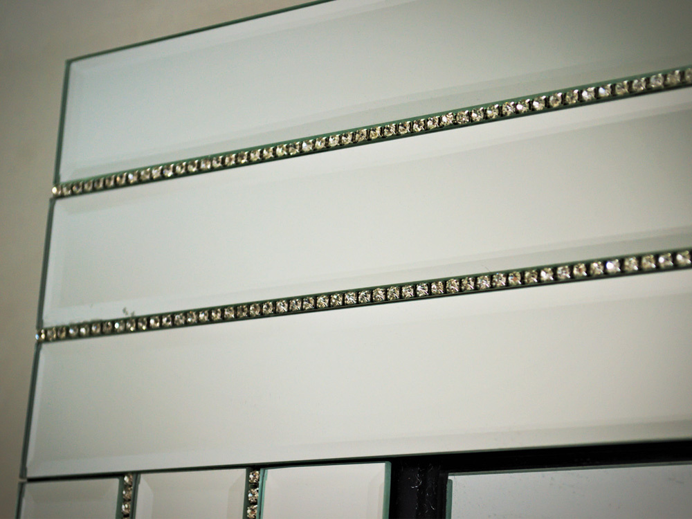 - Nowoczesne, minimalistyczne lustro z dyskretnie frezowanymi frontami, inkrustowane kryształkami. Prosty i uniwersalny design sprawia, że ten model będzie doskonałym wyborem dla wnętrz o zróżnicowanej stylistyce.