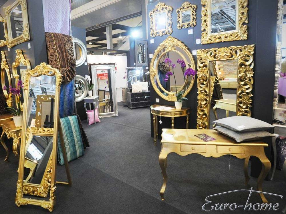 - Wytworne, kryształowe lustro, inspirowane barokowym wzornictwem, którego ażurowa rama została wykonana z masy żywicznej, następnie pokryta za pomocą techniki pozłotniczej szlagmetalem.