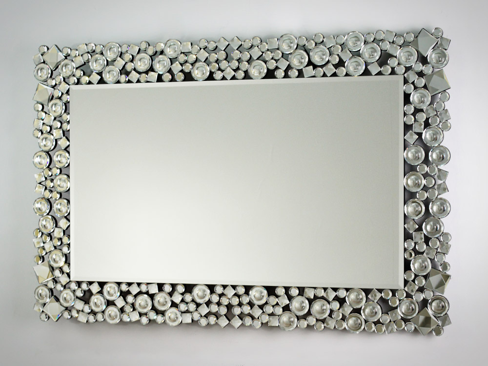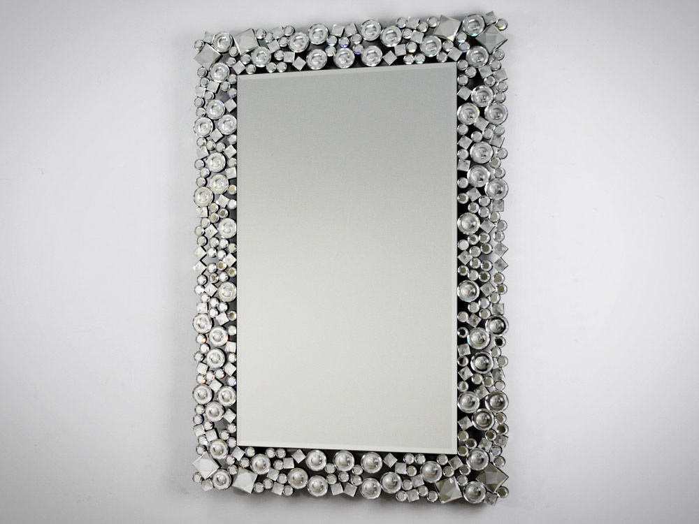 - Lustro w ramie wykonanej ze szlifowanych mieniących się kryształków o różnych formach. Ozdobna, ażurowa rama pięknie podkreśli charakter wnętrza w stylu glamour. Ten model doda blasku i wytworności niejednej aranżacji.