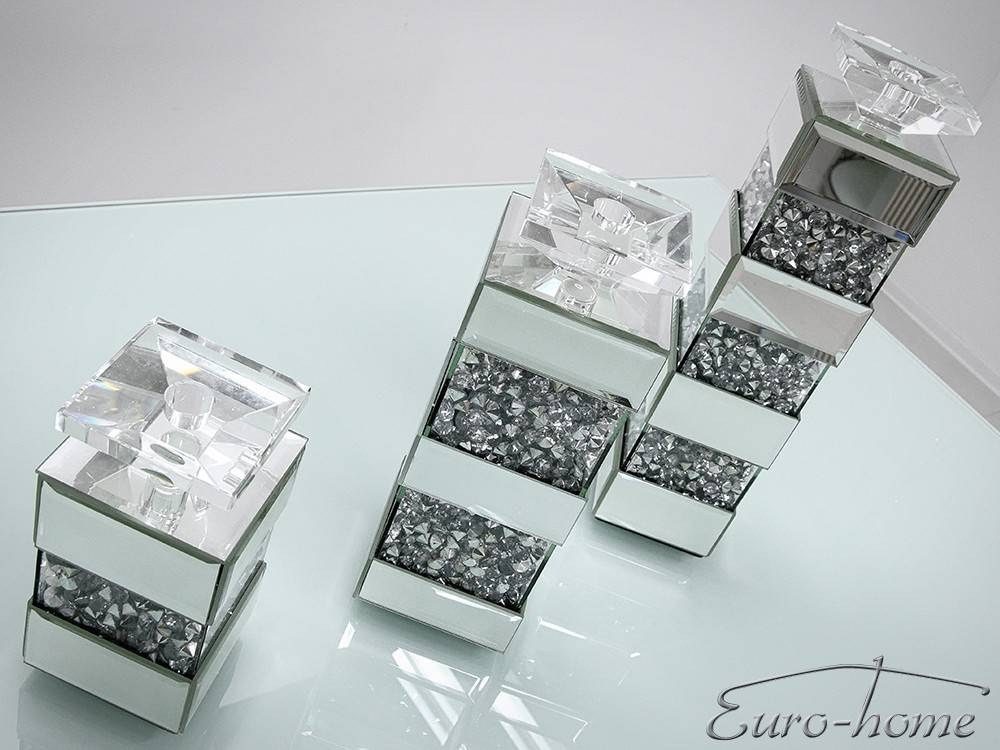 Lustrzany świecznik z kryształkami 10x10x40 cm GD2017