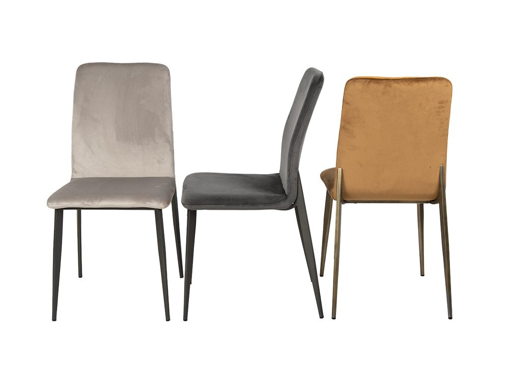 - Tapicerowane, stylowe krzesło, które dzięki połączenie welurowej tkaniny oraz matowego, grafitowego aluminium tworzy niezwykle elegancki design. Ergonomiczny profil pozwala na wygodę i komfort siedzenia.