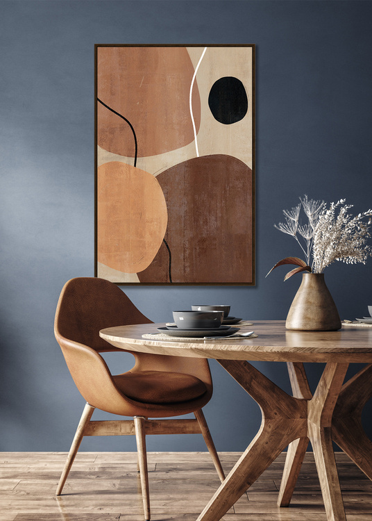 Nadaj swojemu mieszkaniu wyjątkowy charakter. Kup nasz abstrakcyjny obraz w drewnianej ramie o wymiarach 80x120 cm w tonacji brązu i ciesz się wyjątkową dekoracją każdego dnia.