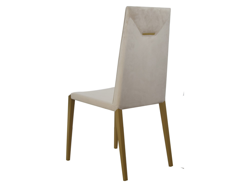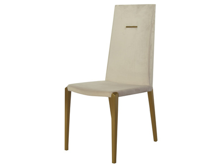 Eleganckie, wygodne krzesło z elementami złota i beżu. Połączenie weluru oraz złotej podstawy tworzy niezwykle elegancki design. Ergonomiczny profil pozwala na wygodę i komfort siedzenia.