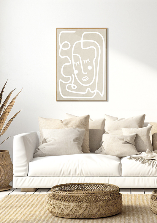 Dodaj stylu i elegancji do swojego wnętrza z naszym beżowym obrazem w drewnianej ramie z białą fakturą.