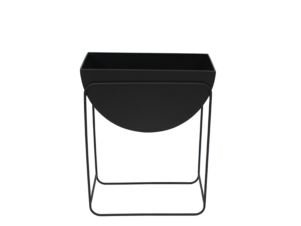 - Kwietnik w kolorze czerni, wykonany ze stali malowanej proszkowo. Pięknie podkreśli i wyeksponuje umieszczone w nim kwiaty lub rośliny. Doniczka jest elementem ruchomym, który można swobodnie wyciągnąć ze stojaka.