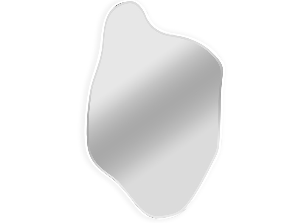 Asymetryczne białe lustro, którego kontury przypominają abstrakcyjne kształty tworząc dynamiczny i interesujący efekt wizualny. Subtelne białe wykończenie idealnie komponuje się z różnymi stylami wnętrz, od nowoczesnych po klasyczne.