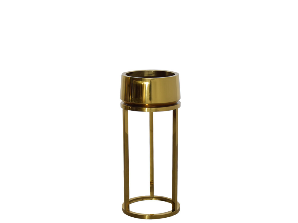 Elegancka wysoka donica wykonana ze stali nierdzewnej, której powierzchnia ma fakturę lustra w kolorze złota. Będzie mocnym akcentem dekoracji wnętrz o różnej stylistyce. Pięknie podkreśli i wyeksponuje umieszczone w niej kwiaty lub rośliny. Doskonale spełni swoją funkcję będąc eleganckim elementem, zarówno w przestrzeni domowej, jak i wnętrzach o spektakularnej powierzchni takich jak hotele czy restauracje.