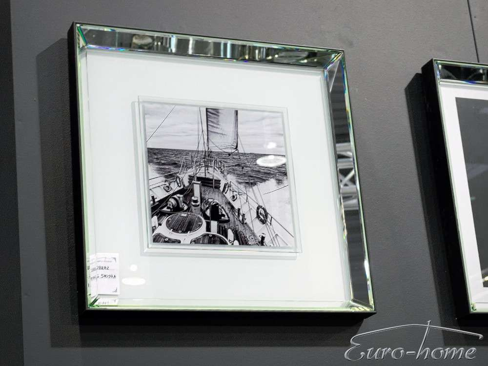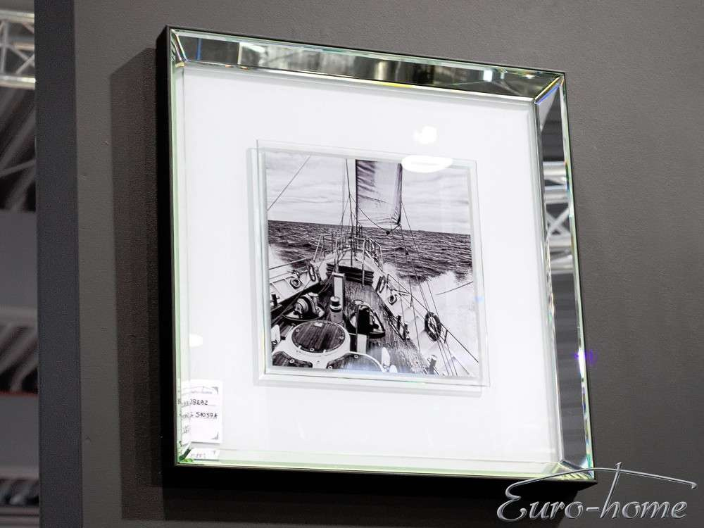 - Czarno-biała reprodukcja w klimacie retro, przestawiająca żeglującą łódź. Efektowna lustrzana rama doda blasku i wytworności niejednej aranżacji, a odbijające się światło pięknie podkreśli walory artystyczne obrazu.