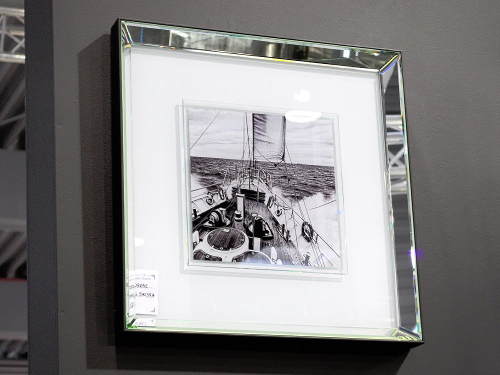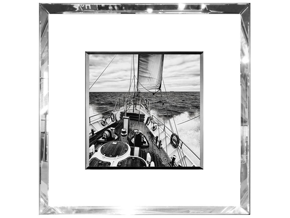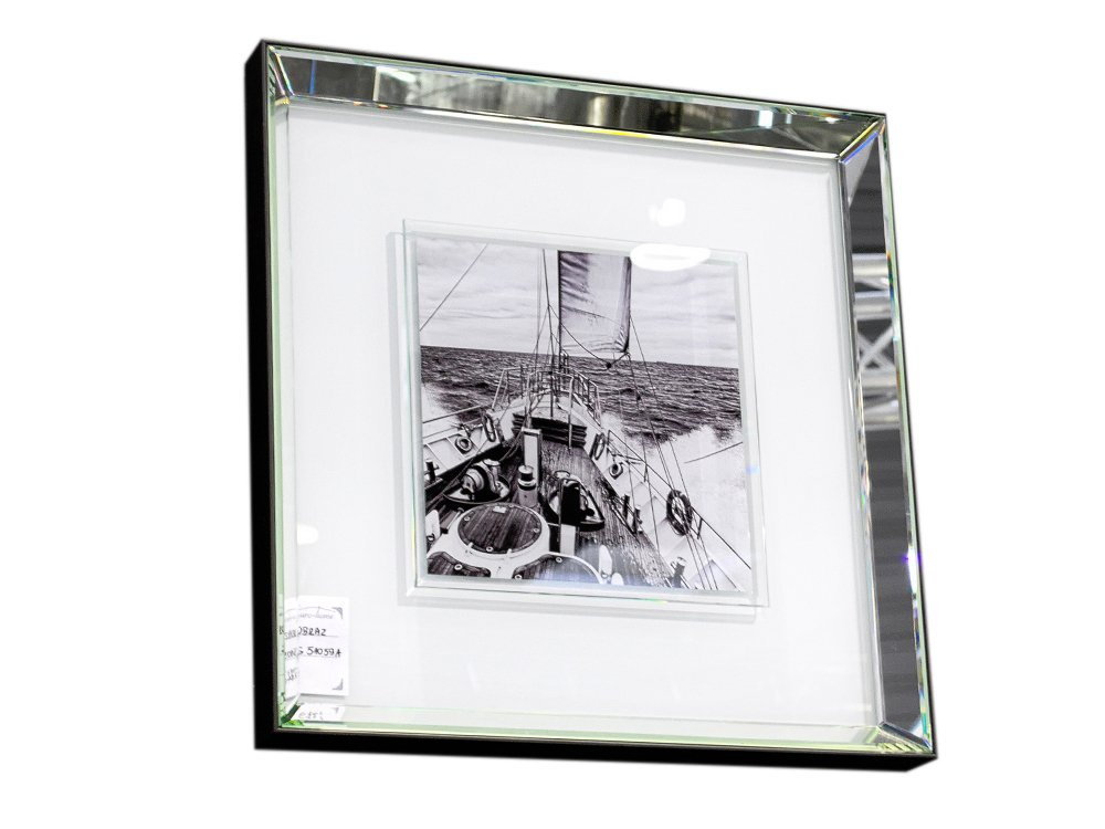 Czarno-biała reprodukcja w klimacie retro, przestawiająca żeglującą łódź. Efektowna lustrzana, fazowana rama doda blasku i wytworności niejednej aranżacji, a odbijające się światło pięknie podkreśli walory artystyczne obrazu. Powierzchnia obrazu została wykonana ze szkła, zdjęcie jest umieszczone pod dodatkową warstwą szkła ze szlifowanymi krawędziami. Doskonale sprawdzi się w domowej aranżacji, jak również w przestrzeniach firmowych. Świetny, elegancki pomysł na prezent dla fanów żeglugi morskiej.