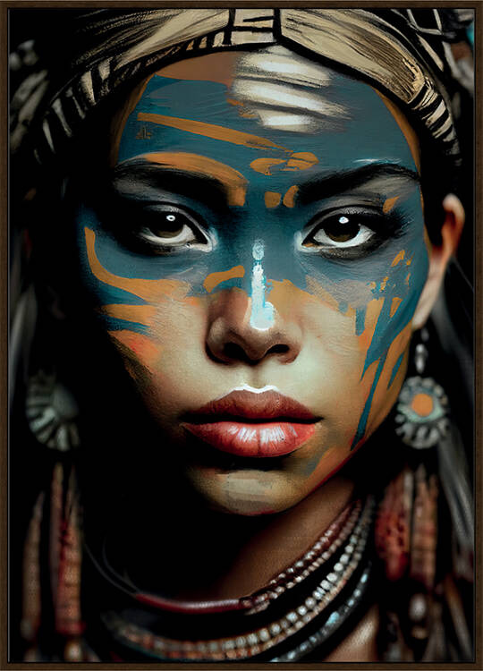 - Odkryj wyjątkowy obraz przedstawiający zbliżenie na kobiecą twarz, utrzymany w eleganckiej tonacji brązu i beżu .Płótno okala rama american box. Model ramy charakteryzuje się niewielkim dystansem pomiędzy obrazem a oprawą.
