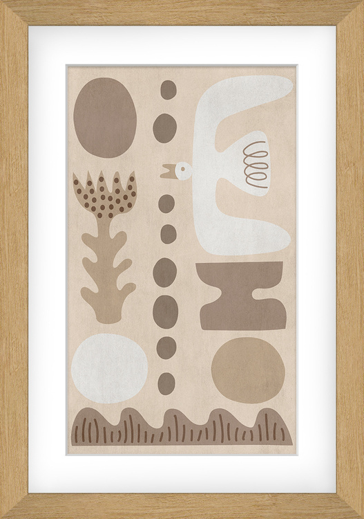 Obraz w Tonacji Beżu w Ramie z Naturalnego Drewna