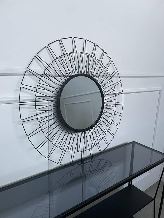 Okrągłe ażurowe czarne lustro słońce Ø80cm TOYJ22-023