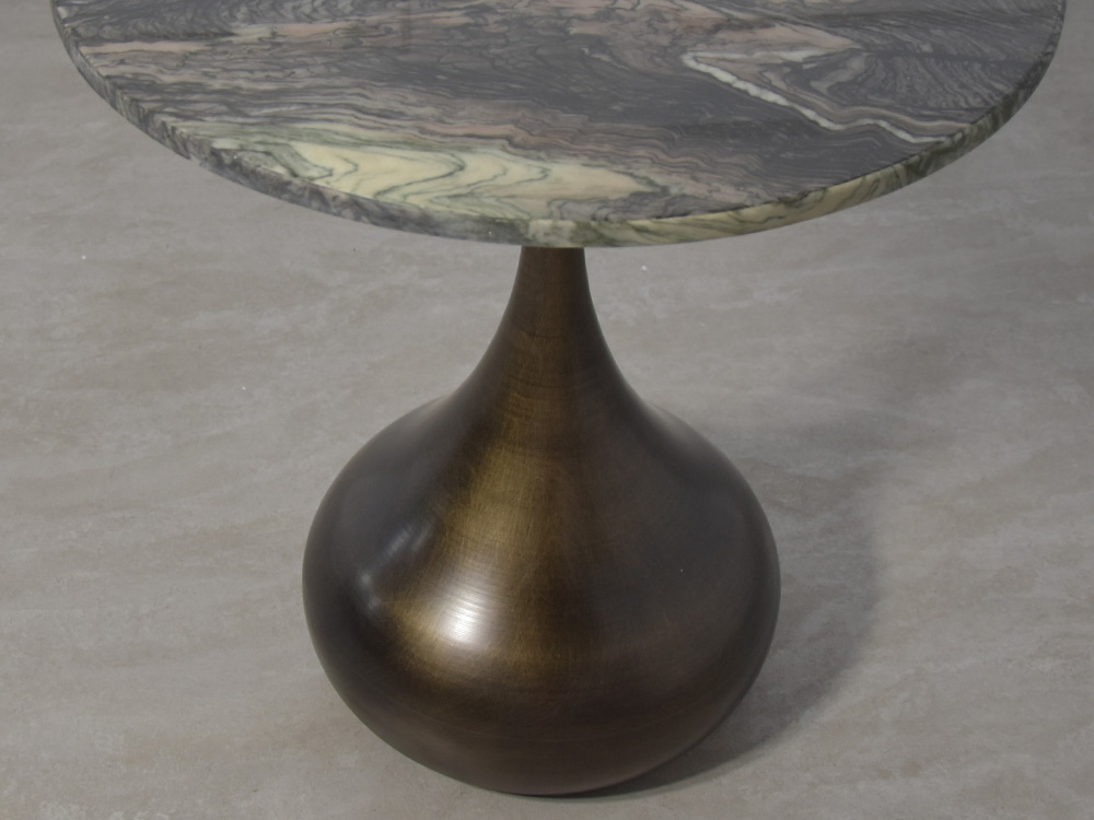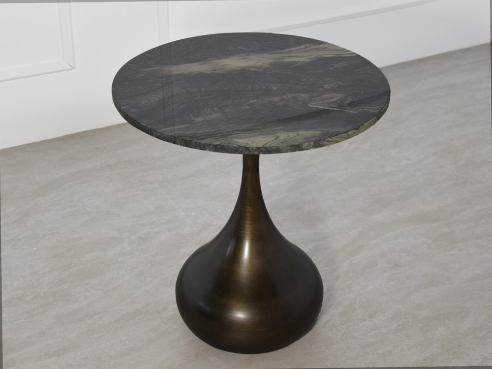 - Elegancki stolik którego projekt łączy w sobie nowoczesny design z naturą. Unikatowego charakter podkreśla blat wykonany z kamienienia imitującego marmur oraz metaliczna noga o opływowym profilu.