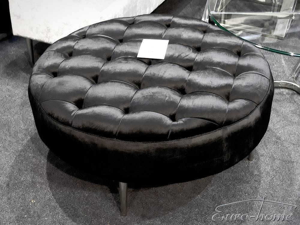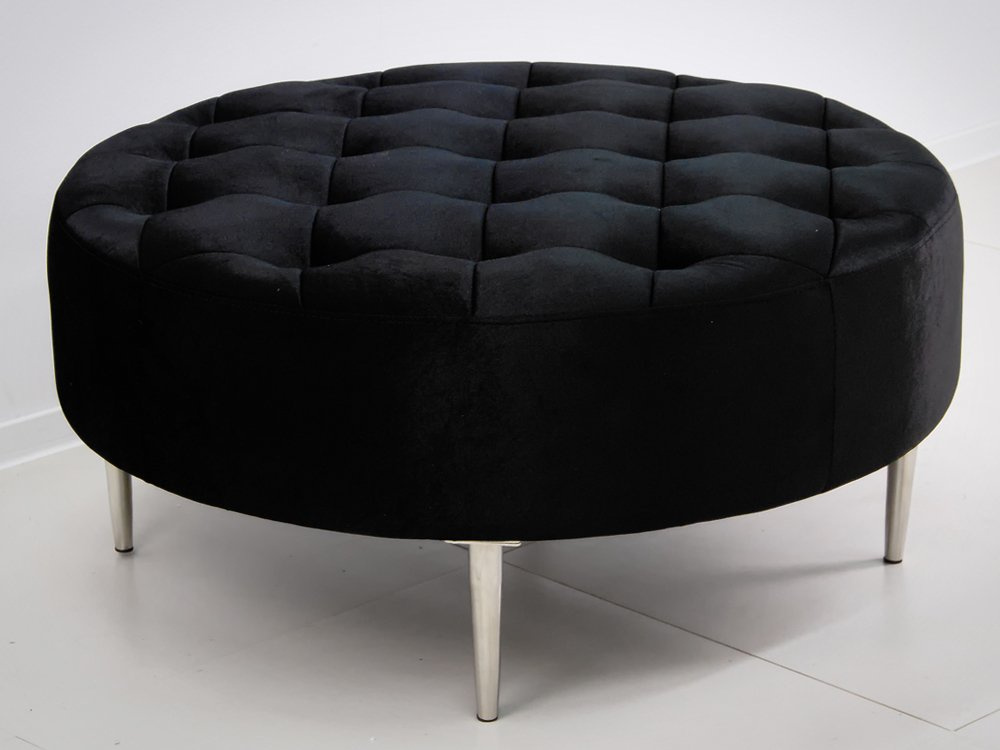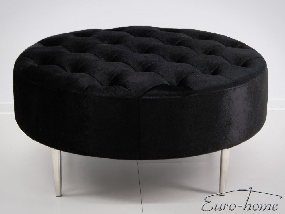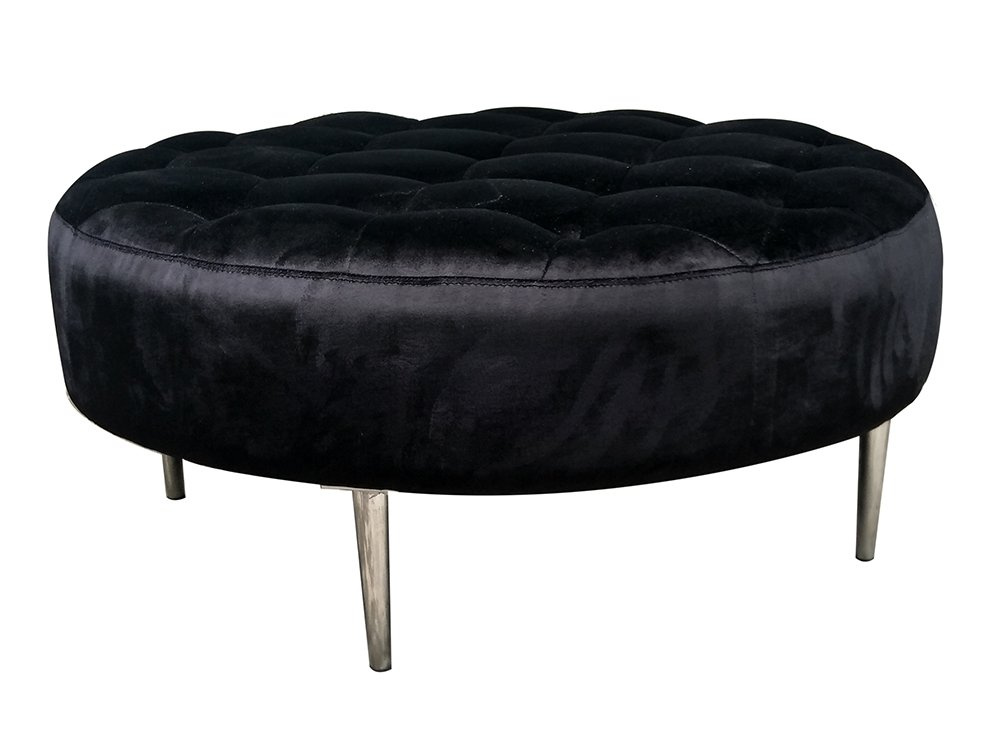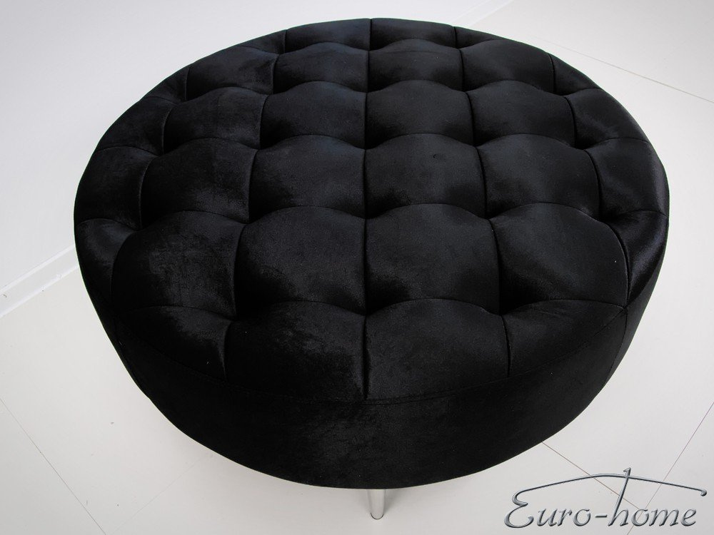 Okrągła welurowa czarna pufa 90x90x42 cm POUF003