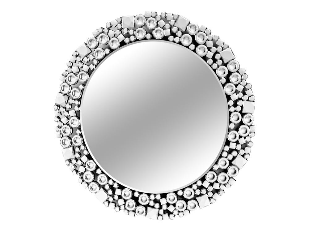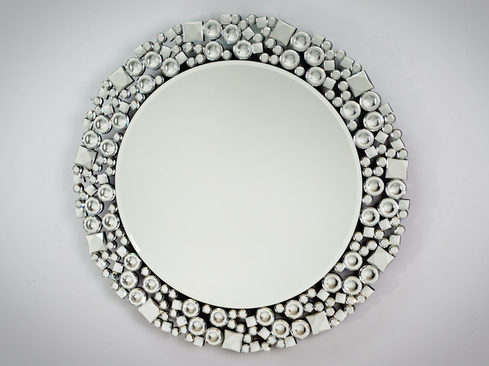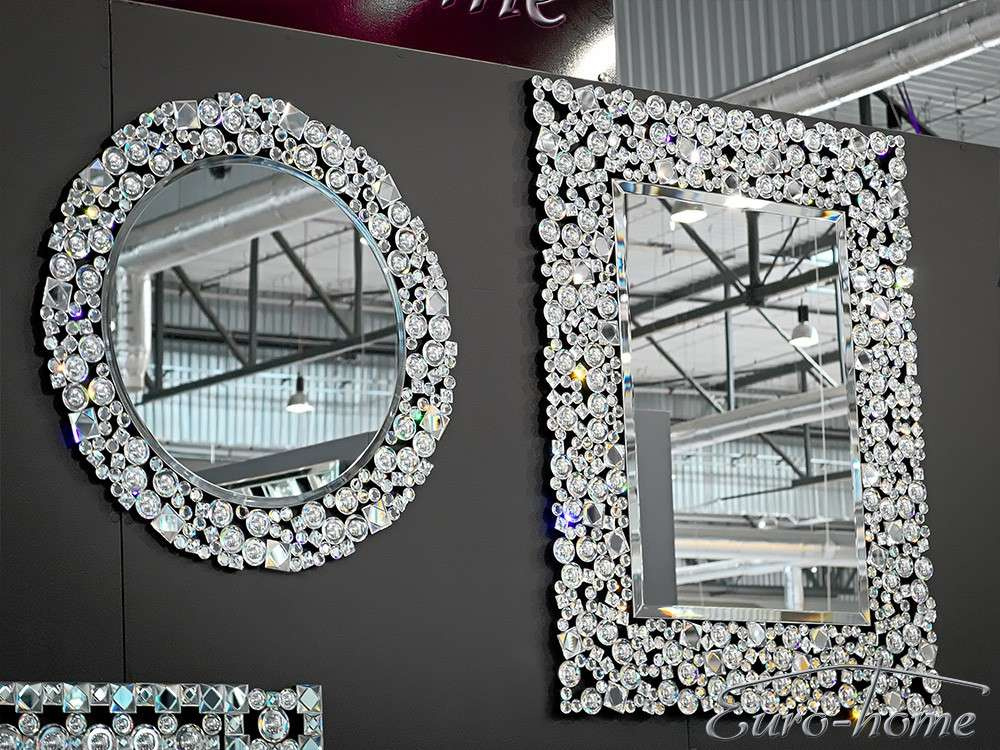 - Lustro w okrągłej ramie wykonane ze szlifowanych mieniących się kryształków o różnych formach. Ozdobna, ażurowa rama pięknie podkreśli charakter wnętrza w stylu glamour. Ten model doda blasku i wytworności niejednej aranżacji.