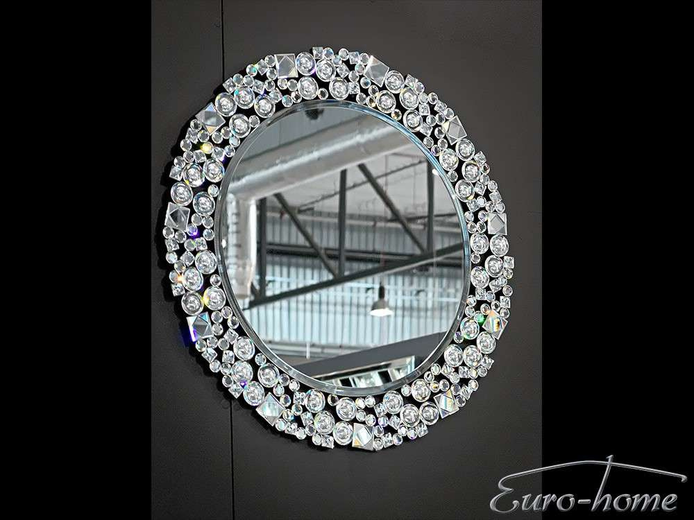 Okrągłe lustro z kryształkami w stylu glamour 70 cm 13tm171M