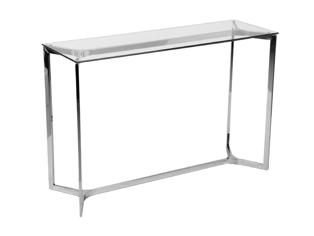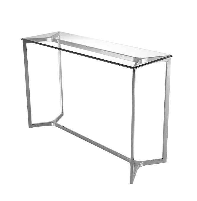 - Konsola która dzięki połączeniu srebrnej geometrycznej ramy z klasycznym hartowanym szkłem nada pomieszczeniu wyjątkowo eleganckiego sznytu.