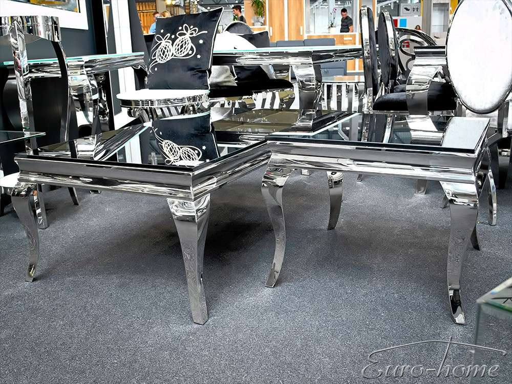 - Stolik wykonany z polerowanej stali nierdzewnej w kolorze srebra. Uwieńczona czarnym blatem ze szkła hartowanego. Ten szlachetny mebel odpowie na oczekiwania osób ceniących wyrafinowanie i elegancję w swoim otoczeniu.