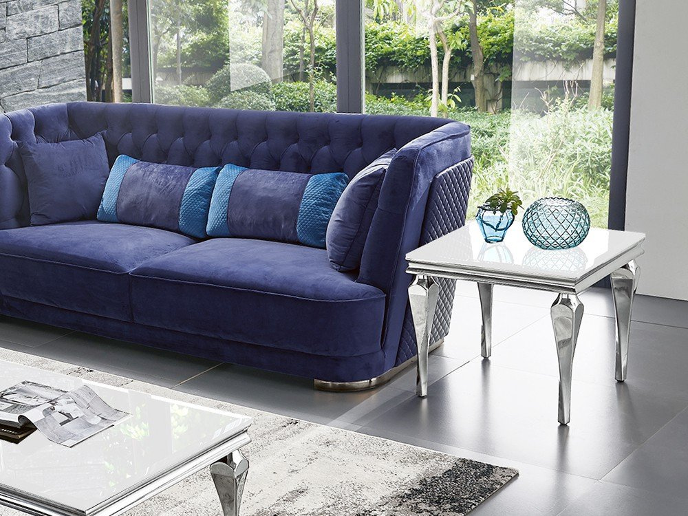 Stolik kawowy wykonana z polerowanej stali nierdzewnej w kolorze srebra. Uwieńczony białym blatem ze szkła hartowanego. Ten szlachetny mebel odpowie na oczekiwania osób ceniących wyrafinowanie i elegancję w swoim otoczeniu.