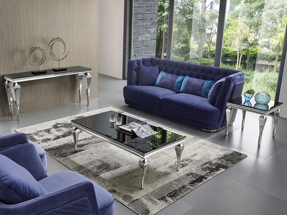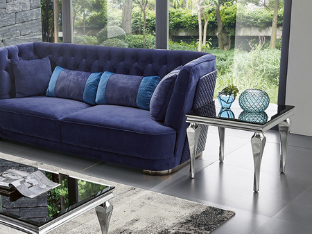 - Stolik kawowy wykonana z polerowanej stali nierdzewnej w kolorze srebra. Uwieńczony czarnym blatem ze szkła hartowanego. Ten szlachetny mebel odpowie na oczekiwania osób ceniących wyrafinowanie i elegancję w swoim otoczeniu.