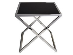 Nowoczesny okrągły szklany stolik osadzony na geometrycznej podstawie Ø105x36 cm C032